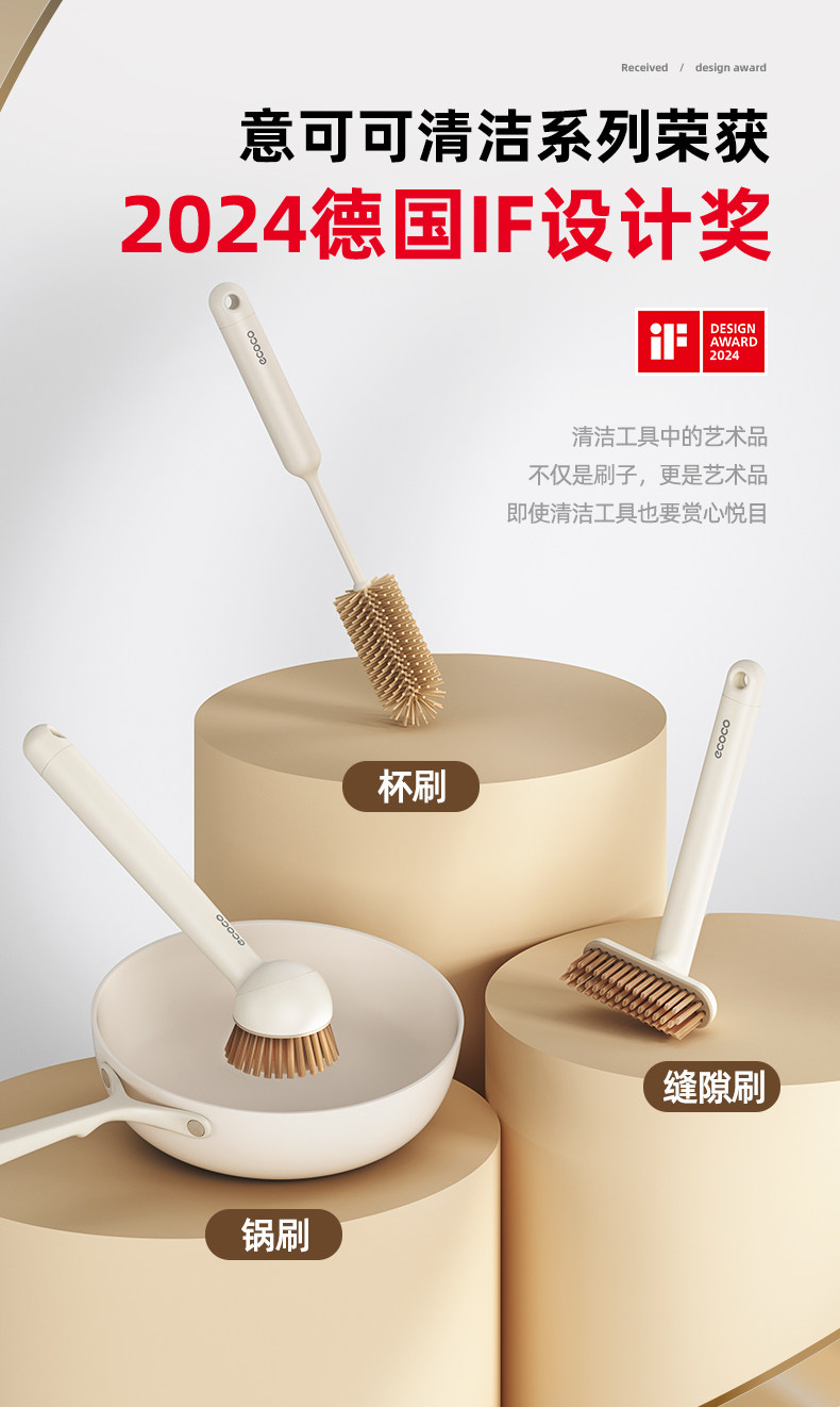 【长柄锅刷/1个装】奶油色(兼用深浅口锅型)